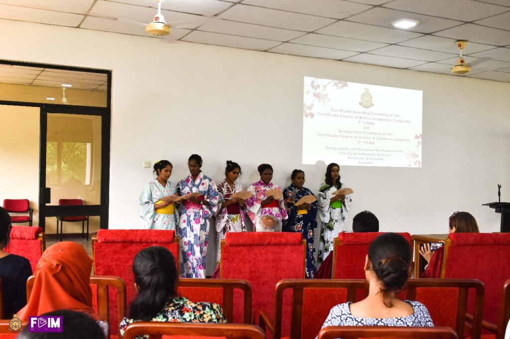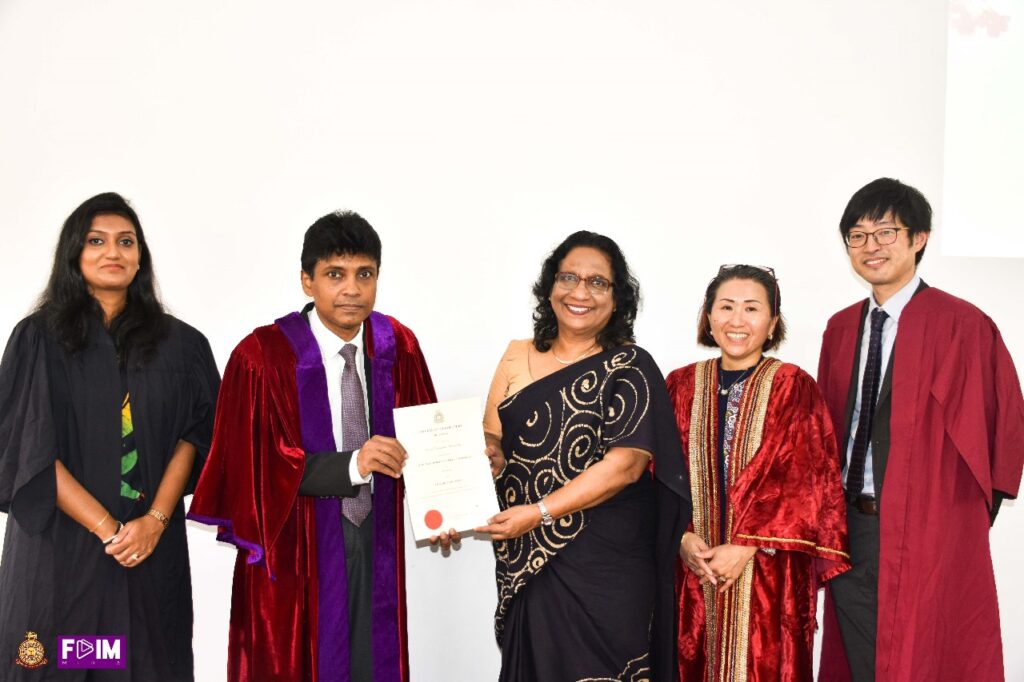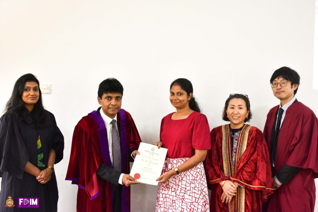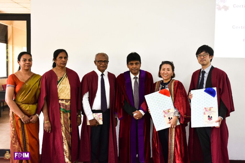 The Certificate Awarding Ceremony of the 1st Intake and the Inauguration Ceremony of the 2nd Intake was successfully held on 09th August 2025 at the Main Board Room of the Faculty of Indigenous Medicine, University of Colombo. The event was graced by the presence of the Chief Guest, Ms. Miyuki Eguchi, Head of Cultural and General Affairs of the Embassy of Japan in Sri Lanka, and the Guest of Honour, Mr. Hiroki Oi, Resident Representative of Japan External Trade Organization (JETRO) Sri Lanka. Their participation highlighted the strong academic and cultural collaboration between Sri Lanka and Japan.